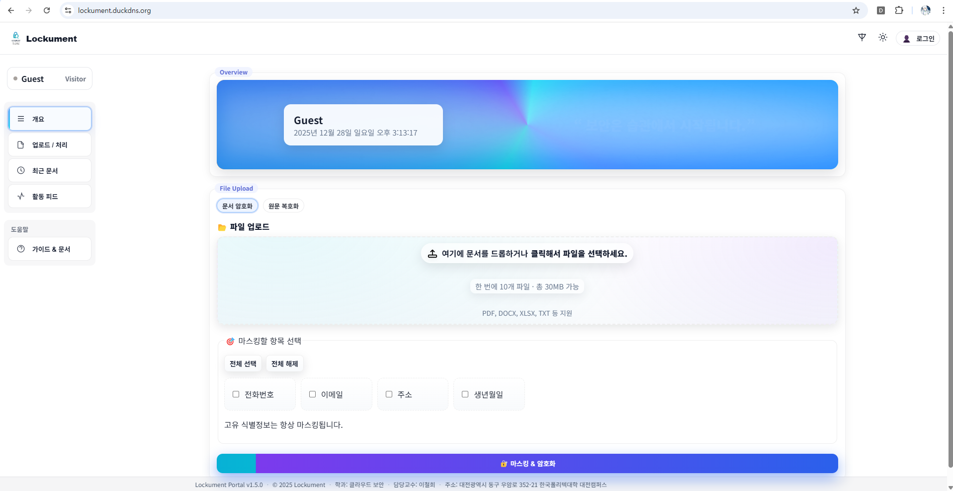 AWS KMS 기반 암호화와 PII 마스킹을 적용해 파일을 안전하게 저장 및 공유하는 웹 서비스. Flask API, Docker/Nginx 배포, 감사 로그(Aduit) 기록을 포함합니다.